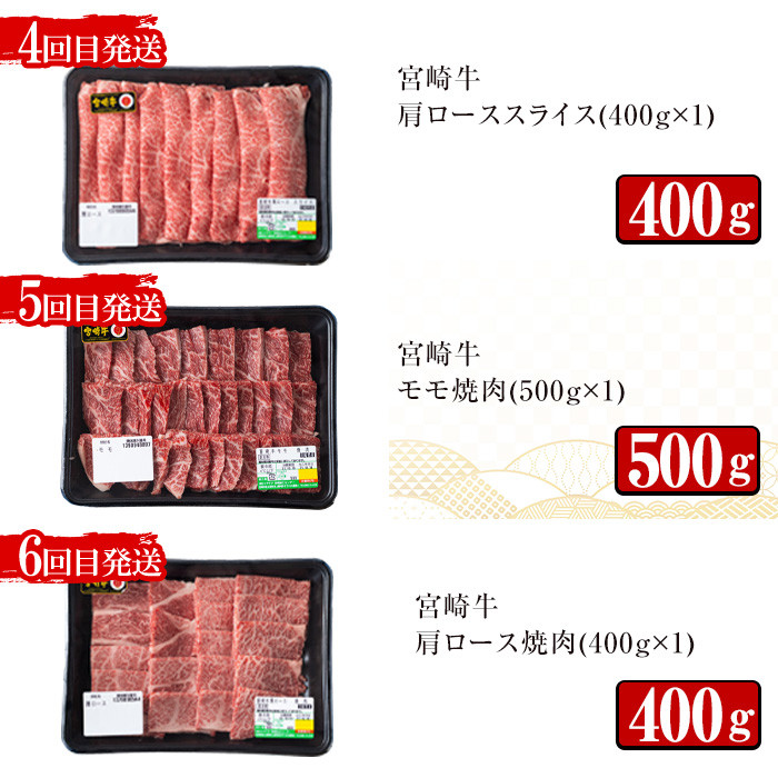 <先行予約受付中!2026年1月から発送開始予定><定期便・6回(連続)>宮崎牛・定期便C(6ヶ月)国産 宮崎県産 宮崎牛 牛肉 ステーキ 焼肉 すき焼き 炒め物 霜降り A4【MI023】【(株)ミヤチク宮崎加工センター】
