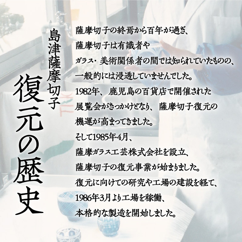 創設は1985年。明治期に途絶えた薩摩切子復元の使命を受け設立されました。