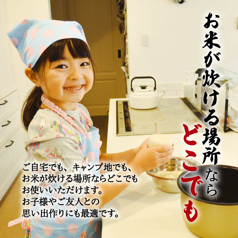 ご自宅でも、キャンプ地でも、お米が炊ける場所ならどこでもお使いいただけます。