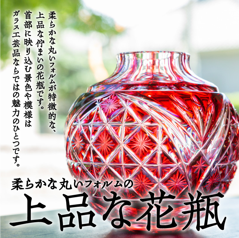 鹿児島県指定伝統工芸品『島津薩摩切子』 現代によみがえる珠玉の輝きをお届けします 島津薩摩切子 丸花器 金赤 K010-023