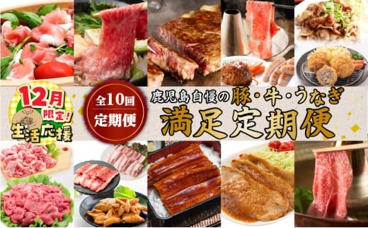 黒豚・黒毛和牛・鰻が楽しめる10回お届け定期便をご用意いたしました! 【 生活応援 +黒豚生ハンバーク2P 付き 】 期間限定 【全10回定期便】鹿児島自慢の豚・牛・うなぎ「満足定期便」 K086-T11_cp