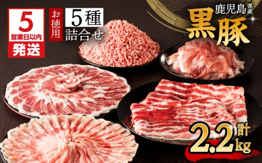 【5営業日以内に発送】鹿児島県産黒豚お徳用 5種詰合せ(2.2kg)…