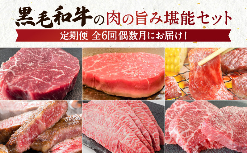 2か月に1回、全6回お届けする、黒毛和牛の肉の旨み堪能セット定期便!
