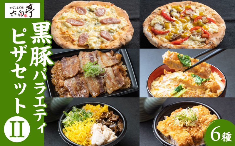 完全調理済みの「黒豚料理」。黒豚ピザ2種類、黒豚めし2種類、出汁茶漬け2種類。 【かごしま黒豚 六白亭】黒豚バラエティピザセット【2】 K163-017