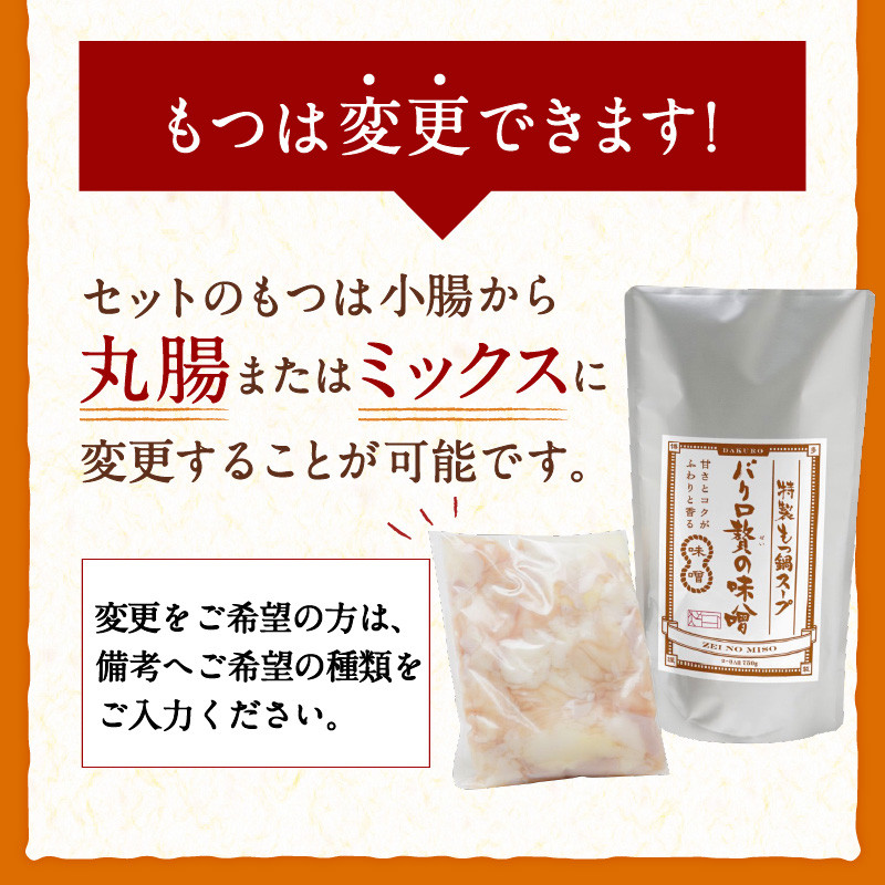 もつの種類を「丸腸」または「ミックス」に変更が可能です。