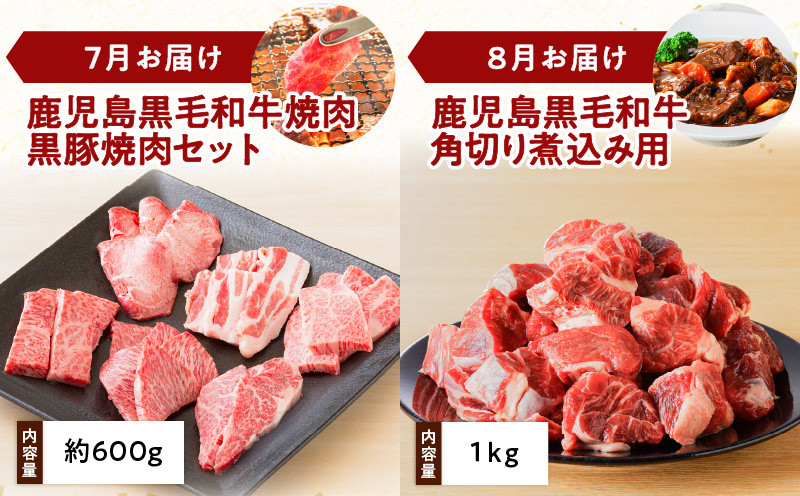 定期便12ヶ月連続で鹿児島黒毛和牛と鹿児島黒豚をお届けいたします! 【全12回】鹿児島黒毛和牛&鹿児島黒豚定期便 K130-T01