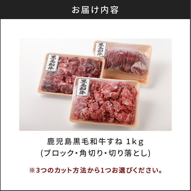 鹿児島県 黒毛和牛すね肉1kg!お料理に合わせてカット方法をお選びいただけます! 切り方選べる(ブロック・角切り・切り落とし)鹿児島黒毛和牛すね1kg K130-011