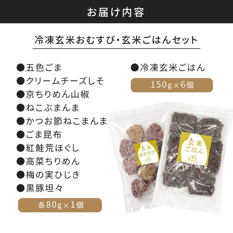 色々な味が楽しめるおむすび10個パックとお茶碗1杯分の玄米ごはん6食分セット。 【7営業日以内に発送】冷凍玄米おむすび・玄米ごはんセット K182-003
