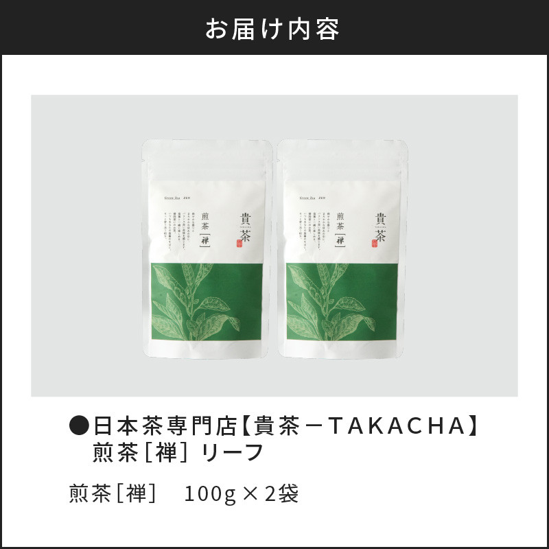 ほっと一息つきたいときにも、突然の来客へのおもてなしにも。 【5営業日以内に発送】日本茶専門店【貴茶-TAKACHA】煎茶[禅] リーフ 200g K068-019