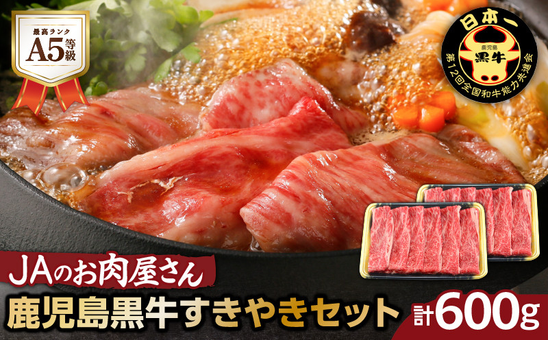 鹿児島が誇るブランド和牛『鹿児島黒牛』ですきやきを! 「JAのお肉屋さん」A5等級!鹿児島黒牛すきやきセット(計600g) K234-002