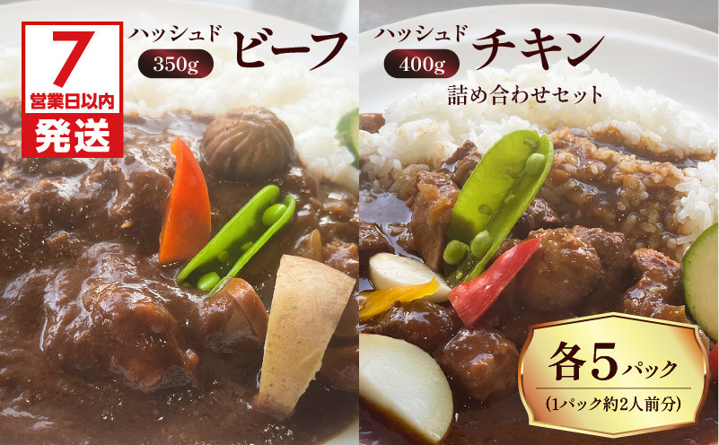 黒毛和牛と黒薩摩鶏の肉がゴロゴロ入った本格的なハヤシライスです。 【7営業日以内に発送】【洋食グリル肝付】ハッシュドビーフ、ハッシュドチキン詰め合わせセット 計10パック K084-007_05