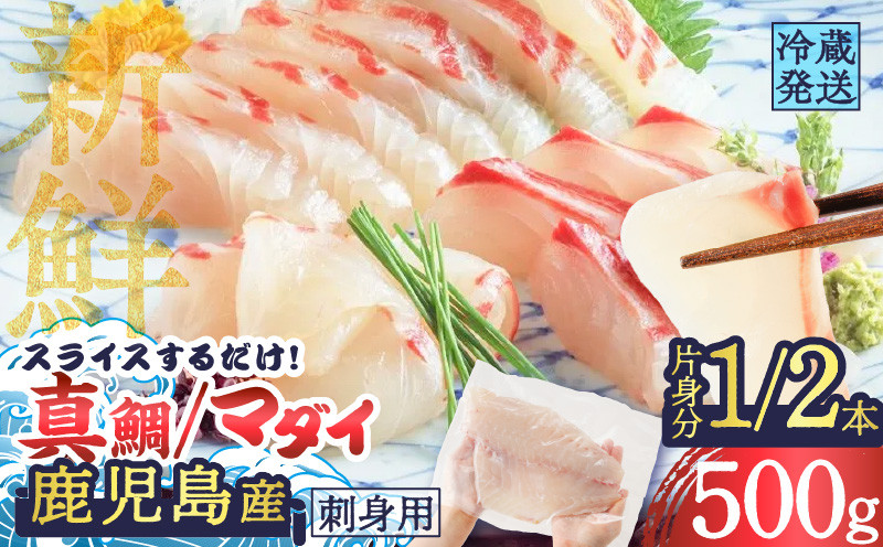 プロが認めた味と品質!お刺身用真ダイの真空パック! 鹿児島産 スライスするだけ!真鯛(マダイ)刺身用 片身分 500g K100-008