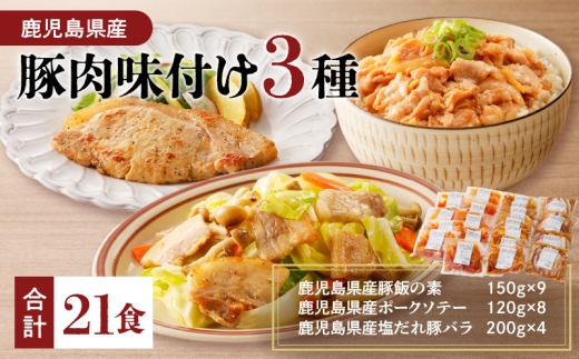 【ナンチクファクトリー】鹿児島県産豚肉味付け3種(21食) K073…