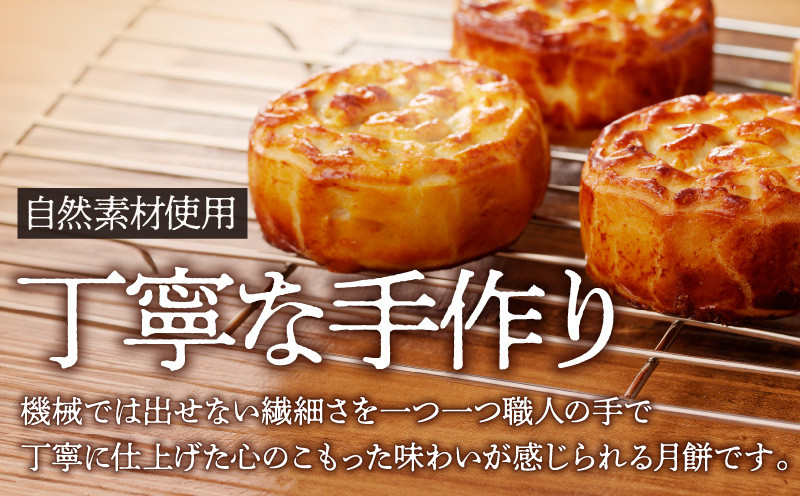 一つ一つ職人の手で丁寧に仕上げています。機械では出せない繊細さと、心のこもった味わいが感じられる月餅です。