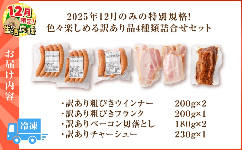 地域の生産者応援の品 お楽しみ。お試し。色々楽しめる4種類、合計6パック入りの詰め合わせセット。 【 期間限定 生活応援 】2025年12月のみの特別規格!色々楽しめる訳あり品4種類詰合せセット K161-029_03_cp