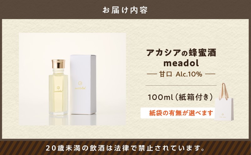 世界最古のお酒!国産アカシア蜂蜜使用! <選べる 紙袋:有or無>アカシアの蜂蜜酒 meadol -ミードル-甘口100ml K105-001_02_SKU