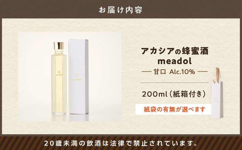 世界最古のお酒!国産アカシア蜂蜜使用! <選べる 紙袋:有or無>アカシアの蜂蜜酒 meadol -ミードル-甘口200ml K105-001_03_SKU