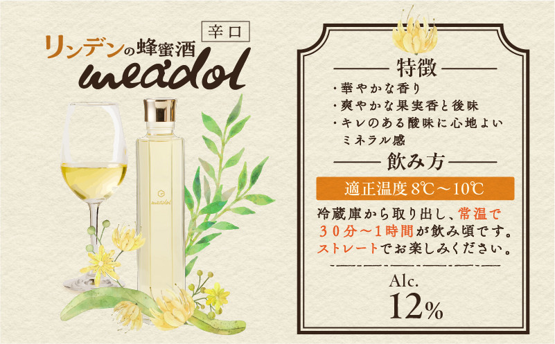 世界最古のお酒!国産リンデン蜂蜜使用! <選べる 紙袋:有or無>リンデンの蜂蜜酒 meadol -ミードル-辛口100ml K105-003_02_SKU