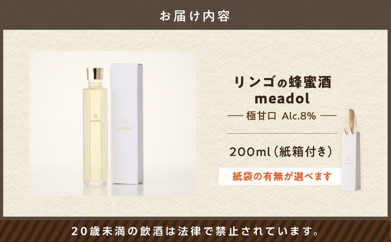 世界最古のお酒「蜂蜜酒」!国産リンゴ蜂蜜使用! <選べる 紙袋:有or無>リンゴの蜂蜜酒 meadol ミードル-極甘口-200ml K105-005_03_SKU