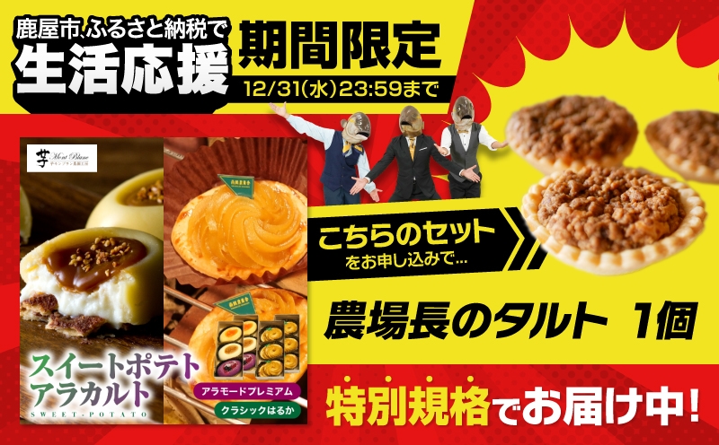 | 容量 | <スイートポテトアラモード&クラシック>計12個入 ・スイートポテト・アラモードプレミアム 3種入×2箱 ・スイートポテト・クラシックはるか 3個入×2箱 +農場長のタルト 各1個【期間限定!生活応援】 【保存方法】 冷凍 【原材料名】 <スイートポテト・アラモードプレミアム> 黄金:さつま芋(鹿児島県産)、バター、乳製品、牛乳、グラニュー糖、小麦粉、卵黄、アーモンド、ナッツ、ココアバター、水あめ、チョコレート、ゼラチン、寒天加工品、塩/香料、乳化剤、ゲル化剤(増粘多糖類) 綾紫:さつま芋(鹿児島県産)、乳製品、フランボワーズピューレ、バター、小麦粉、グラニュー糖、牛乳、チョコレート、赤すぐり、ココアバター、水あめ、卵、ゼラチン、塩/ゲル化剤(増粘多糖類)、乳化剤 紅黄金:さつま芋(鹿児島県産)、乳製品、バター、発酵乳、小麦粉、グラニュー糖、ブラッドオレンジピューレ、クリームチーズ、オレンジピール、卵、ココアバター、チョコレート、水あめ、ゼラチン、レモン、塩/ゲル化剤(増粘多糖類)、乳化剤 <スイートポテト・クラシックはるか> さつま芋(鹿児島県産)、グラニュー糖、卵黄、牛乳、小麦粉、バター、塩 【原材料産地】 鹿児島県 【製造・加工地】 鹿屋市 |