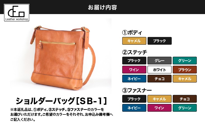 ショルダーバッグ(SB-1)は、25mm幅のショルダーベルトをマチ部分に取り付けた上品なデザインとなっております。