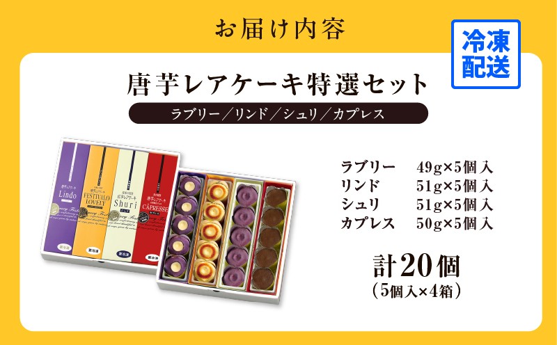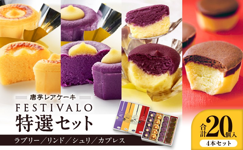 甘さひかえめ、とろ~りなめらかな食感のスイーツ 1230-3 フェスティバロ 唐芋レアケーキ特選4本セット(ラブリー/リンド/カプレス/シュリ) KN023-002
