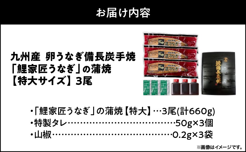 1748 【特大】備長炭手焼 鯉家匠うなぎの蒲焼 3尾(660g) KN0…