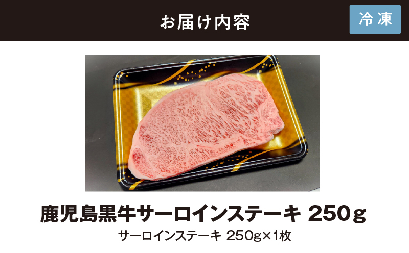 | 容量 | サーロインステーキ 250g×1枚 【保存方法】 冷凍 ※解凍後は1日~2日以内にお召し上がりください。 【原材料名】 牛肉 【原材料産地】 鹿屋市 【製造・加工地】 鹿屋市 |