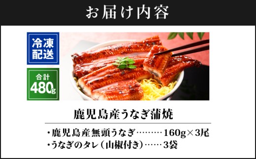 上質な脂のりが自慢のふっくら香ばしいうなぎ 2093-2 鹿児島産うなぎ160g×3尾 合計480g KN021-013-03