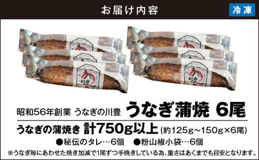 ふっくら柔らかいこだわりの「川豊のうなぎ」 947-3 昭和56年創業 うなぎの川豊 うなぎ蒲焼6尾 KN049-001-06