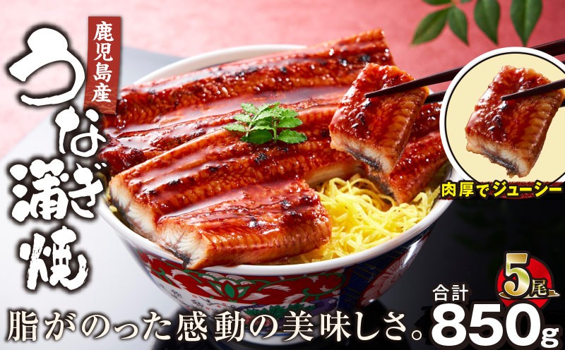 脂のりの良いやわらかな身の香ばしいうなぎ 2445 鹿児島産うなぎ 合計850g(170g×5尾) KN021-014-05