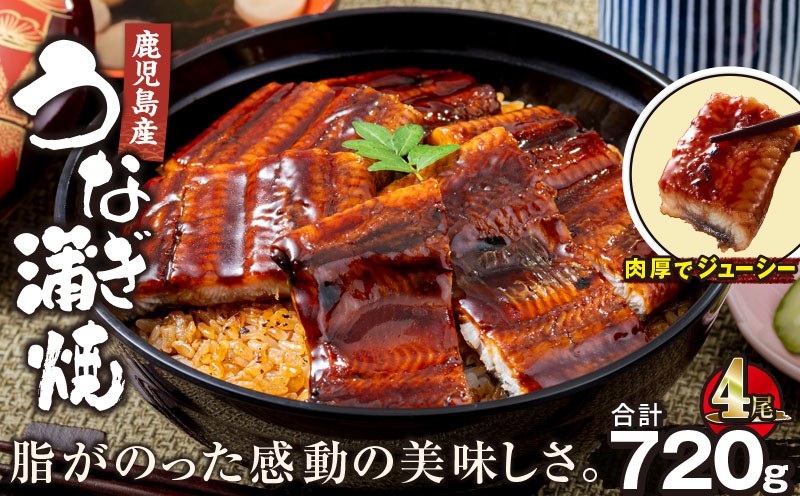 脂のりの良いやわらかな身の香ばしいうなぎ 2447 鹿児島産うなぎ 合計720g(180g×4尾) KN021-015-04