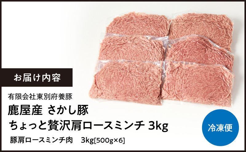 エサにハーブ・唐辛子・乳酸菌を使用してお腹の中から元気に育てた豚です <配送時期が選べる>2477 鹿屋産さかし豚 ちょっと贅沢肩ロースミンチ 3kg KN079-015