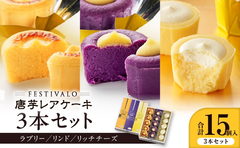 甘さひかえめ、とろ~りなめらかな食感のスイーツ 2412-1 フェスティバロ 唐芋レアケーキ 3本セット(ラブリー/リンド/リッチチーズ) KN023-003