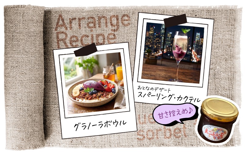 鹿児島県産の無添加ブルーベリーをふんだんに使用し、砂糖とレモン汁を加えた、甘さ控えめのデザートソルベです。
