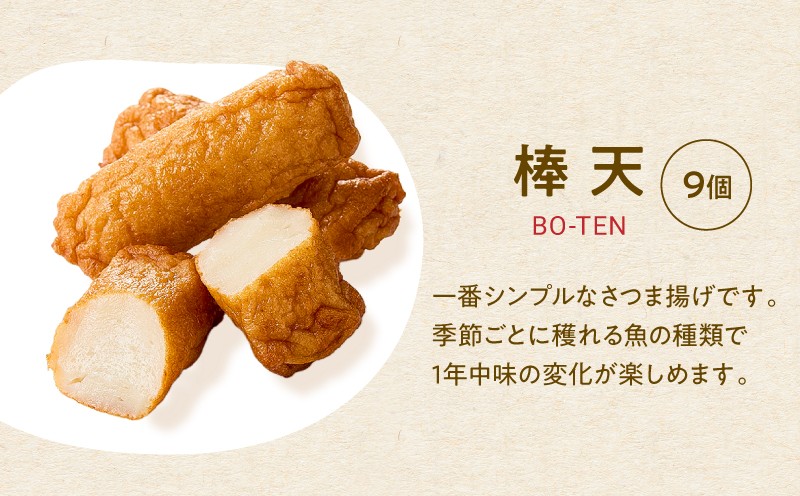 | 容量 | <さつまあげ5種 計33個/800g> ・棒天 9個 ・さつまいも天 6個 ・牛蒡天 6個 ・野菜天 6個 ・黒玉(イカ&ひじき) 6個 【保存方法】 冷凍 【原材料名】 イトヨリ、鯵、メバチ、人参、ニラ、グリンピース、さつまいも、ごぼう、ひじき、イカ |