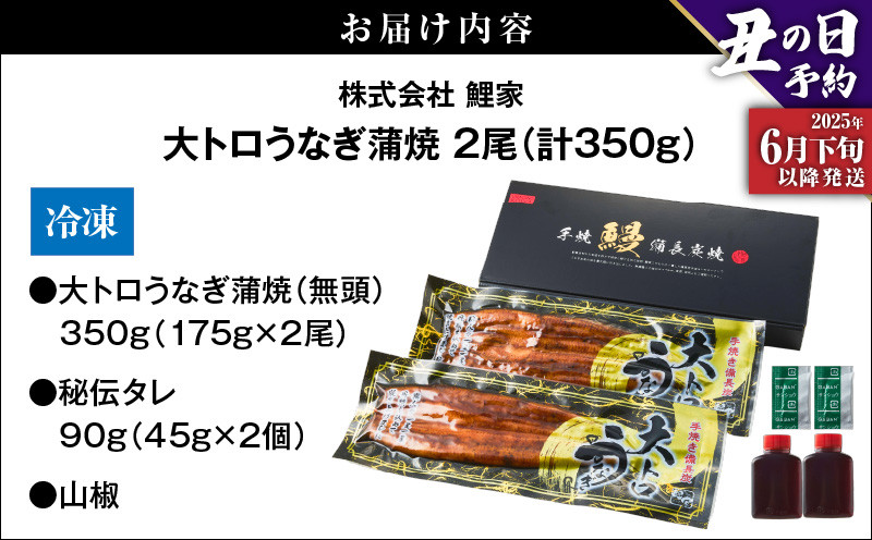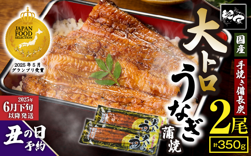 チョイス限定 【2025年予約受付中】備長炭の香ばしさ&ふっくらジューシーな大トロうなぎ 1223-3B 【2025年6月下旬以降順次発送】大トロうなぎ蒲焼2尾セット計350g【備長炭・職人手焼き!】 KN040-005-01B