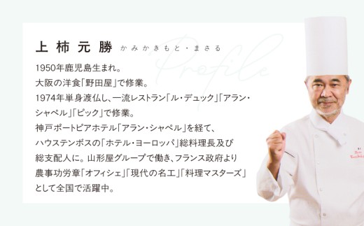 ハウステンボスの「ホテル・ヨーロッパ」総料理長及び総支配人を経て、山形屋グループで働き、フランス政府より農事功労章「オフィシェ」「現代の名工」「料理マスターズ」として全国で活躍中。