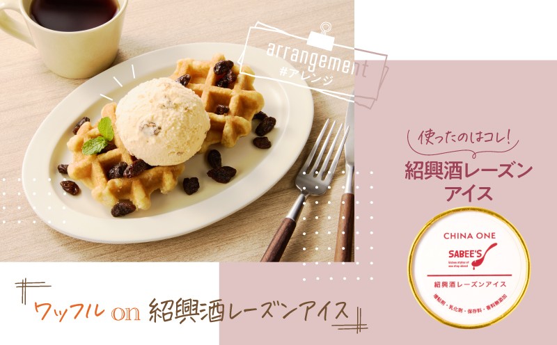 甕だし紹興酒にレーズンを浸して紹興酒の香りを移し、卵黄ベースの濃厚なアイスと混ぜ合わせています。