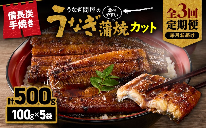 【全3回定期便】うなぎ問屋の備長炭手焼 うなぎ蒲焼カット 500g…