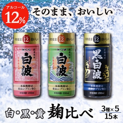 | 容量 | ■内容量■ 白麹【さつま白波 12度】200mlペットボトル×5本 黒麹【黒白波 12度】200mlペットボトル×5本 黄麹【さくら白波 12度】200mlペットボトル×5本 合計15本セット ■原材料:お礼品に記載 |