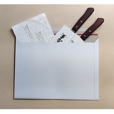 2.専用袋に包丁を2本梱包いただき、申込用紙とともに郵便ポストへ投函または窓口から発送いただきます。(返送期限:1年)