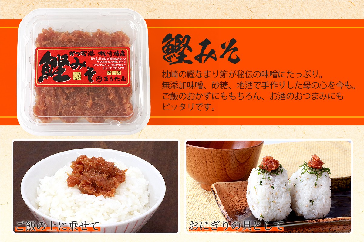 チョイスPayポイントと交換できる品 白ご飯はもちろん、野菜につけて食べるのもオススメです。 まるた屋セット<計6種類> 無添加 かつおみそ 枕崎 A3-37【1167954】