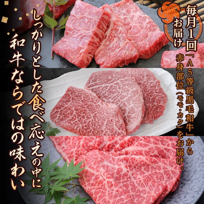 チョイスPayポイントと交換できる品 最高ランク「A5等級黒毛和牛」の赤身部位(モモ・カタ)を厳選してご用意しました。 <毎月定期便>黒毛和牛厳選赤身肉定期便(枕崎市) RR-0003 全3回_肉 牛肉 黒毛和牛 赤身 定期便 鹿児島県 枕崎 ステーキ 焼肉 A5 冷凍 人気 おすすめ 送料無料【4071894】