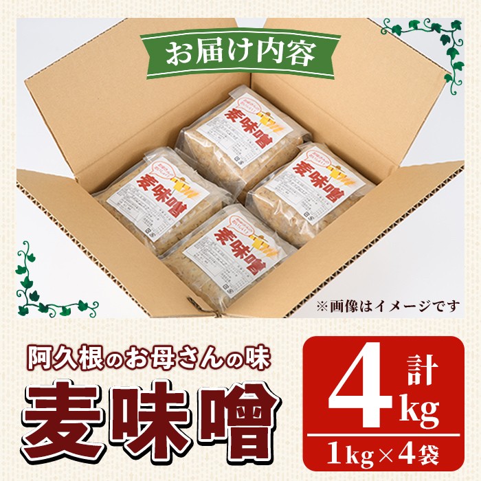 阿久根のお母さんの味噌の味をご堪能してください!味噌汁など様々な料理で! お母さんのおいしい麦味噌(計4kg・1kg×4袋)みそ 調味料 味噌 みそ汁 手作り 味噌汁 お味噌汁 朝ごはん ミソ 小分け 母の味【阿久根市生活研究グループ】akn072-01