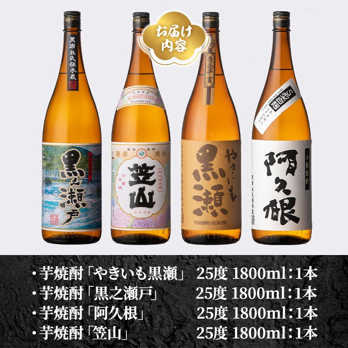 やきいも黒瀬・黒之瀬戸・阿久根・笠山 芋焼酎 25度 1800ml×各1本(計4本)