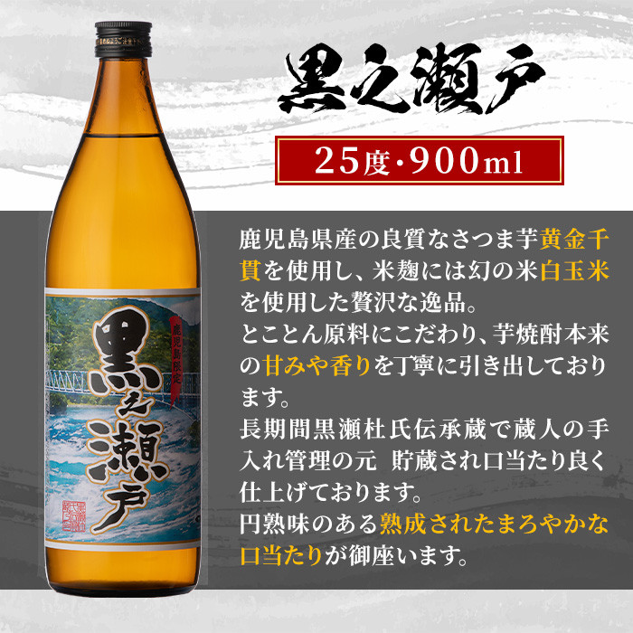 「黒之瀬戸」…鹿児島県産の良質なさつま芋"黄金千貫"を使用し、米麹には幻の米"白玉米"を使用した贅沢な逸品。
