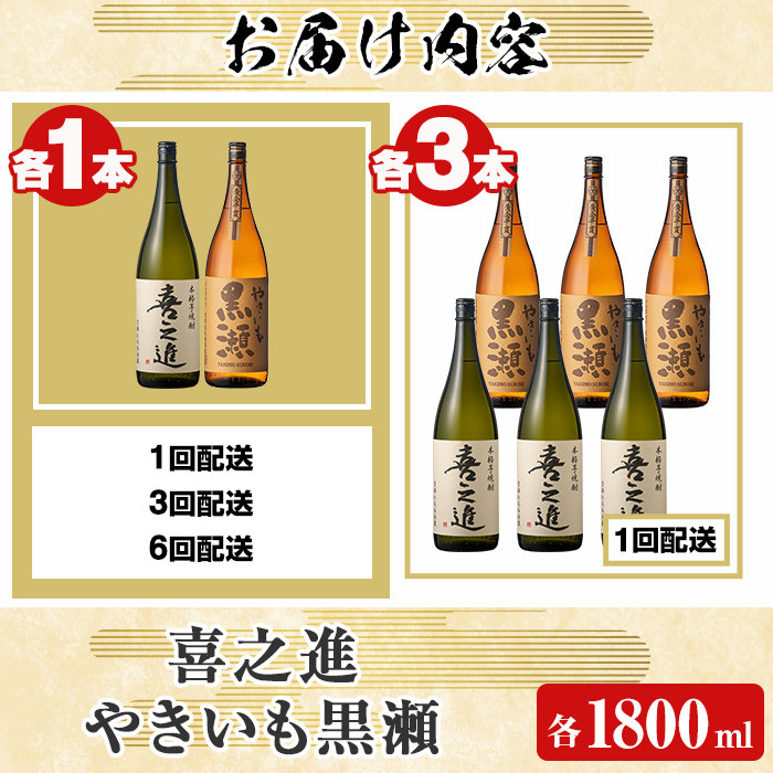 齊藤商店イチオシの焼酎をお届け! <本数・配送回数が選べる!>薩摩焼酎セット「喜之進・やきいも黒瀬」(各1800ml×合計2~6本・1~6回) 1升瓶 国産 焼酎 いも焼酎 お酒 アルコール 水割り お湯割り ロック【齊藤商店】