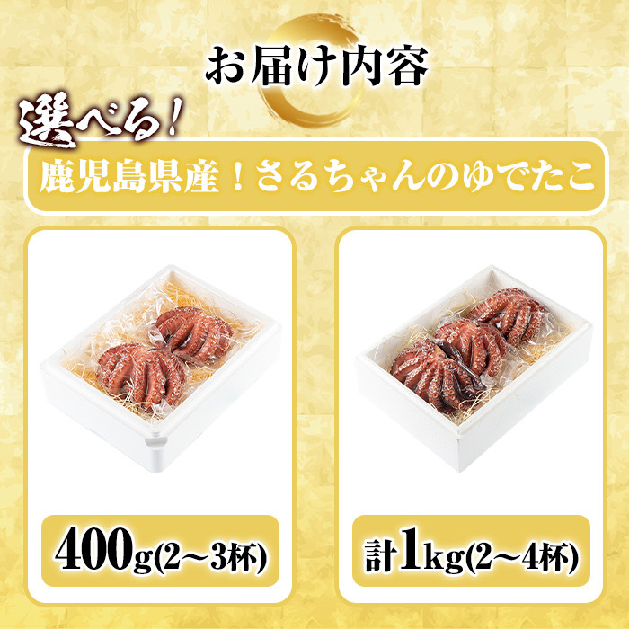 鹿児島県産地たこのゆでたこ(計400g) 国産 九州産 新鮮 地ダコ 魚介 魚貝 海産物 海鮮 蛸 味付 刺身 磯辺焼き たこ焼き 唐揚げ 料理 おかず お弁当【さるがく水産】akn028-01