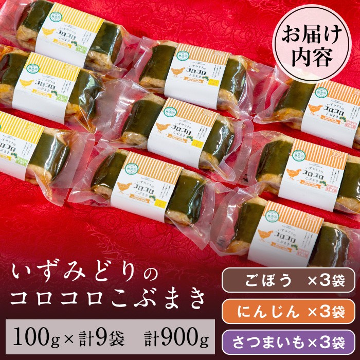 常温保存OK!3種の具材が楽しめる!優しい味わいのコロコロこぶまき! i176 いずみどりのコロコロこぶまき(100g×9袋・1袋3個入) 常温 常温保存 肉じゃが 牛肉 黒毛和牛 じゃがいも 加工品 おかず 晩御飯 簡単調理 お手軽 レンチン 【西尾】
